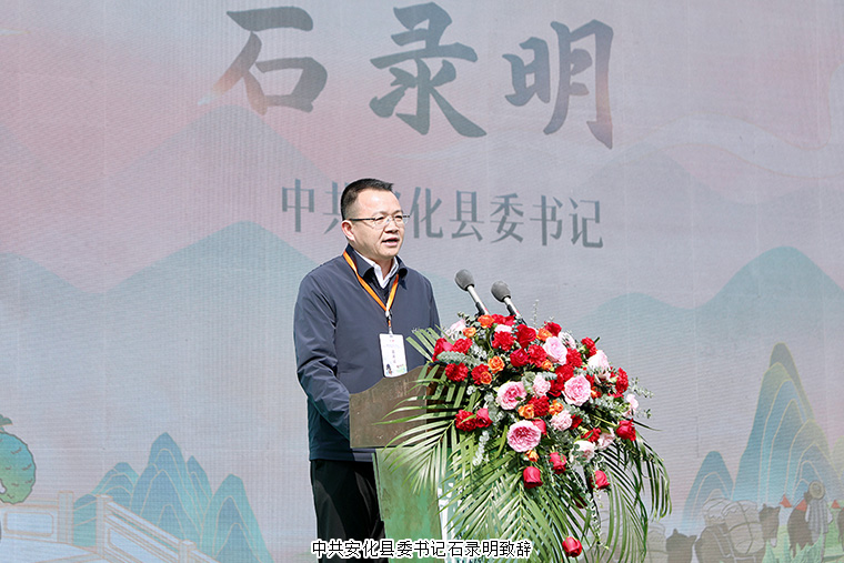 中共安化縣委書(shū)記石錄明致歡迎辭。人與人的相遇莫過(guò)于久別重逢,人與茶的相遇便是前世今生。非常榮幸,今天由我用一盞茶的時(shí)間與大家一同品味安化獨(dú)特的詩(shī)和遠(yuǎn)方。從春天出發(fā),用一盞茶的時(shí)間,感受萬(wàn)里茶路馬蹄聲的古道茶香之美。從春天出發(fā),用一盞茶的時(shí)間,領(lǐng)略高山流水遇知音的山水畫(huà)卷之美。從春天出發(fā),用一盞茶的時(shí)間,縱享十步之內(nèi)有芳草的人杰地靈之美。安化黑茶開(kāi)園節(jié)的舉辦,標(biāo)志著安化36萬(wàn)畝茶園進(jìn)入了全面開(kāi)采期。人生如茶,希望我們都能從春天出發(fā),從安化出發(fā),一起赴一場(chǎng)春日采茶的清新之旅。