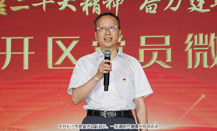 精彩的宣講也贏得了評(píng)委的點(diǎn)贊。賽后, 中共長(zhǎng)沙市委宣傳部副部長(zhǎng)、一級(jí)調(diào)研員唐曙光對(duì)比賽進(jìn)行了點(diǎn)評(píng)。他指出,15組選手都從小處著手、大處著眼,緊扣主題,結(jié)合了自己或是單位或是身邊的人、身邊的事,講的很深刻、很貼切,選手的宣講有吸引力、有表現(xiàn)力、有感染力,讓觀眾深受鼓舞,這是一次有溫度、有力度、有深度的宣講活動(dòng)。他提出四點(diǎn)建議,首先要搞清楚宣講與演講的區(qū)別,宣講更多的是傳播黨的理論方針政策,而演講更多是以某一個(gè)主題講知識(shí)感受,更多的是通過一種藝術(shù)的方式展現(xiàn)出來(lái)。第二,鑒于這是微宣講,建議大家選擇主題,可以從小切口入手,不宜選擇過于龐大的選題。第三,選取自己熟悉或親身經(jīng)歷的身邊事,然后結(jié)合黨的理論政策方針來(lái)講會(huì)更生動(dòng)。第四,在形式上面鼓勵(lì)創(chuàng)新,但還是看實(shí)際的主題合不合適,過于花哨或是選手手勢(shì)、姿勢(shì)太多會(huì)影響大家觀看的感受。最后他希望瀏陽(yáng)經(jīng)開區(qū)能再接再厲,在不遠(yuǎn)的將來(lái)有更新更高的姿態(tài)向長(zhǎng)沙展示自己獨(dú)特的魅力風(fēng)采。