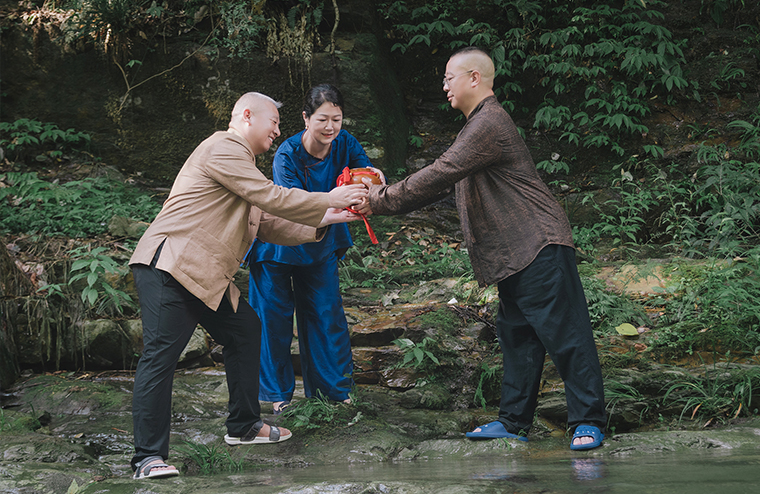 將第一壇小九溪源頭之水傳遞于勞嘉總裁、胡均安常務副總裁