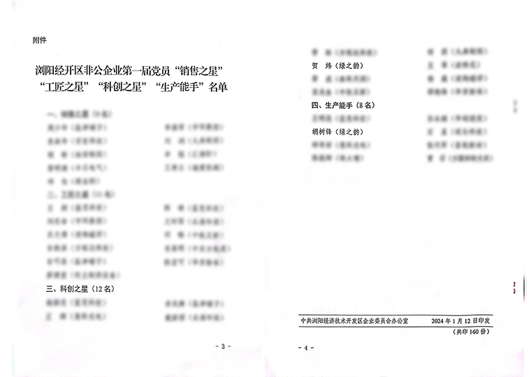 會(huì)上,還對(duì)瀏陽經(jīng)開區(qū)非公企業(yè)第一屆黨員“銷售之星”“工匠之星”“科創(chuàng)之星”“生產(chǎn)能手”的獲得者進(jìn)行了表彰。綠之韻集團(tuán)科研中心黨支部書記賀煒獲得“科創(chuàng)之星”稱號(hào),綠之韻保健日用品黨支部黨員胡樹鋒獲得“生產(chǎn)能手”稱號(hào)。