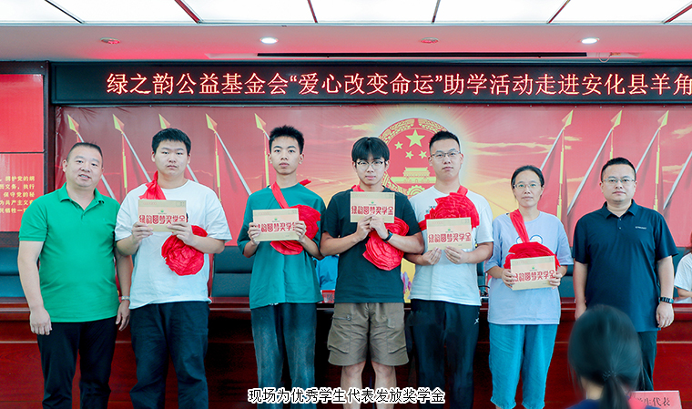 投身公益是一份愛(ài)心,回報(bào)桑梓是一份鄉(xiāng)情,返鄉(xiāng)創(chuàng)業(yè)是一種責(zé)任。胡均安代表表示,作為一名安化籍企業(yè)家,同時(shí)也是一名安化縣人大代表,積極投身到建設(shè)家鄉(xiāng)的事業(yè)中去,是他與生俱來(lái)的責(zé)任與使命。多年來(lái),綠之韻集團(tuán)始終堅(jiān)持把公益事業(yè)上升到企業(yè)發(fā)展戰(zhàn)略高度。我們?cè)谌珖?guó)各地先后援建了11所希望學(xué)校,投入300萬(wàn)元在全國(guó)各地開(kāi)展“綠韻圓夢(mèng)?書(shū)香助學(xué)”活動(dòng),陸續(xù)投入1000萬(wàn)元開(kāi)展“樹(shù)人行動(dòng)”……累計(jì)捐贈(zèng)款物8600多萬(wàn)元。成立21年以來(lái),綠之韻始終堅(jiān)持承擔(dān)社會(huì)責(zé)任,堅(jiān)守“讓善行成為生命習(xí)慣 ”的理念,致力于傳遞愛(ài)的力量,從鄉(xiāng)村振興、愛(ài)心助學(xué)、扶危助困到體育健康、衛(wèi)生醫(yī)療等等。教育幫扶一直是綠之韻公益基金會(huì)的重要關(guān)注點(diǎn)之一。時(shí)值盛夏畢業(yè)季,今天我們?cè)诎不h羊角塘鎮(zhèn)頒發(fā)獎(jiǎng)學(xué)金,給予那些品學(xué)兼優(yōu)的學(xué)生更多鼓勵(lì)和學(xué)習(xí)的機(jī)會(huì),希望營(yíng)造濃厚的關(guān)心人才、尊重人才、支持人才以及愛(ài)學(xué)、勤學(xué)、好學(xué)、比學(xué)的濃厚氛圍。同時(shí),也希望獲得鼓勵(lì)的優(yōu)秀學(xué)生代表可以堅(jiān)定理想信念,樹(shù)立遠(yuǎn)大抱負(fù),把這份殷殷愛(ài)心轉(zhuǎn)化為成才之志、奮發(fā)之源,在建設(shè)家鄉(xiāng)、投身鄉(xiāng)村振興、回報(bào)社會(huì)的生動(dòng)實(shí)踐中放飛青春夢(mèng)想。