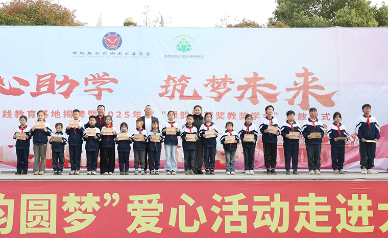 為營造濃厚的關(guān)心人才、尊重人才、支持人才以及愛學(xué)、勤學(xué)、好學(xué)、比學(xué)的濃厚氛圍,2023年,致公黨湖南省委會、湖南省綠之韻公益基金會“綠韻圓夢行動”捐贈50萬元愛心資金用于在安化大橋?qū)W校設(shè)立“獎教獎學(xué)金”,支持鄉(xiāng)村振興文化建設(shè)和教育事業(yè)發(fā)展。4月2日,致公助學(xué)實踐教育基地揭牌暨2025年度“綠韻圓夢獎教獎學(xué)金”發(fā)放儀式再次走進安化縣冷市鎮(zhèn)大橋?qū)W校,為鄉(xiāng)村教育注入了新的活力。