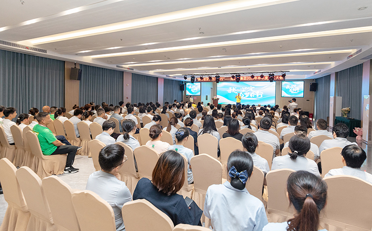 隨后,綠之韻集團(tuán)總裁勞嘉發(fā)表講話。她首先向新入職員工表示了歡迎和祝賀,向臺下各位以及奮戰(zhàn)在市場一線的各位同事致以誠摯的感謝和崇高的敬意?;仡櫳习肽辏覀児餐〉昧肆钊斯奈璧某煽?,這份沉甸甸的收獲,凝聚著在座每一位員工以及一線市場家人們的辛勤汗水和不懈努力。下半年,我們要明確完成業(yè)績目標(biāo)、提高產(chǎn)品銷售等具體目標(biāo),并對設(shè)定目標(biāo)進(jìn)行深入分析與鋪排落實。她通過三個關(guān)鍵詞對下半年的重點工作進(jìn)行分享,一是煥新,以破局之勇刷新成長維度,推動公司高質(zhì)量發(fā)展。推動高質(zhì)量發(fā)展的核心動力是勇于創(chuàng)新思維、革新方法、升級能力,以適應(yīng)新的市場環(huán)境和更高的發(fā)展要求;二是同心,以聚沙之力筑牢前行根基。目標(biāo)一致,信念相通,力量才能匯聚,唯有上下一心,才能形成強大的合力,共同朝著年度目標(biāo)堅定邁進(jìn);三是共興,以共贏之智開拓未來版圖。希望大家用心投入、用心感受、用心建設(shè),積極參與到企業(yè)文化的塑造與實踐中,形成強大的共性凝聚力。同時,我們要高度重視打造學(xué)習(xí)型企業(yè)的建設(shè),持續(xù)優(yōu)化人才培養(yǎng)與發(fā)展機制,為大家的成長提供更堅實的平臺。下半年的征程已經(jīng)開啟,希望大家以此次員工大會為新的起點,用“煥新”的勇氣、“同心”的信念、“用心”的態(tài)度,全力以赴,共同奮斗向著年度目標(biāo)奮勇沖刺,開創(chuàng)更加美好的明天。