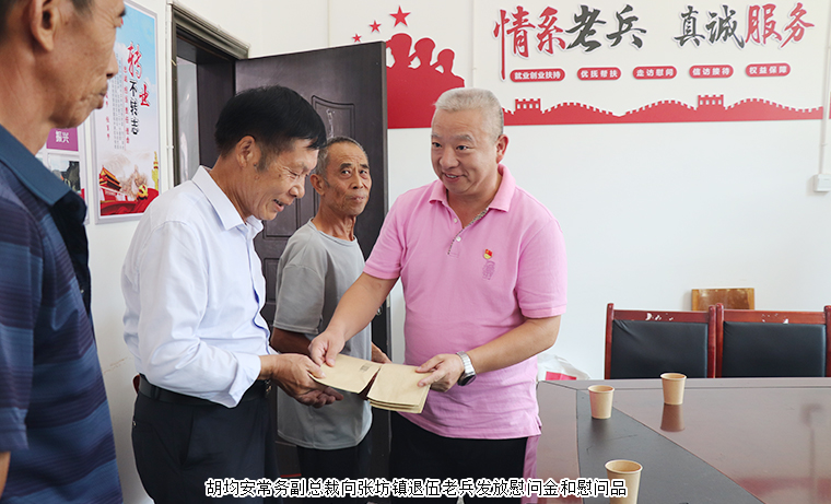 隨后,綠之韻一行前往張坊鎮(zhèn),繼續(xù)走訪慰問當(dāng)?shù)仄渌宋槔媳?,了解他們的生活狀況和需求,傳遞組織的關(guān)懷。座談會上,綠之韻集團(tuán)黨委書記劉云首先代表綠之韻集團(tuán)向張坊鎮(zhèn)、小河鄉(xiāng)為國家國防事業(yè)做出貢獻(xiàn)的軍屬、老兵們致以崇高敬意和節(jié)日祝福。劉云書記深情回顧了綠之韻集團(tuán)與軍人、與瀏陽這片熱土深厚的三重“情緣”:第一重情是擁軍慰問情。一直以來,胡國安董事長堅持在每年“八一”建軍節(jié)組織開展走訪慰問退伍軍人活動。這份對軍人的深情厚誼已成為綠之韻的一個傳統(tǒng)。第二重情是尊軍用軍情。綠之韻集團(tuán)一直對軍人懷有深厚的感恩之情。集團(tuán)歷來優(yōu)先聘用優(yōu)秀的退伍軍人作為集團(tuán)的骨干力量,為這些曾為國防做出貢獻(xiàn)的軍人提供發(fā)揮才干的舞臺。第三重情是幫扶共建情。從過去的精準(zhǔn)扶貧、到鄉(xiāng)村振興再到現(xiàn)在的持續(xù)幫扶,綠之韻與小河鄉(xiāng)有著長期深厚的情誼。正是這份深厚的情誼,促使集團(tuán)今年“八一”特意來到小河鄉(xiāng)、張坊鎮(zhèn)進(jìn)行慰問。未來,綠之韻集團(tuán)黨委將繼續(xù)秉承這份“情緣”,一如既往地關(guān)心支持退伍軍人的生活與發(fā)展,積極履行企業(yè)社會責(zé)任,為瀏陽這片熱土繼續(xù)貢獻(xiàn)企業(yè)力量。