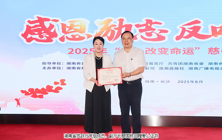 活動(dòng)現(xiàn)場(chǎng)播放了“愛心改變命運(yùn)”2025年主題視頻,愛心企業(yè)和受助學(xué)生代表發(fā)言。湖南省慈善總會(huì)會(huì)長(zhǎng)黃蘭香,湖南省民政廳廳長(zhǎng)黃東紅,湖南省民政廳黨組成員、副廳長(zhǎng)廖國(guó)核,湖南省婦聯(lián)一級(jí)巡視員盧妹香,湖南省老干部局二級(jí)巡視員彭小平等領(lǐng)導(dǎo)上臺(tái)為受助受助學(xué)生代表發(fā)放助學(xué)金和升學(xué)禮,并勉勵(lì)他們感恩前行,以實(shí)際行動(dòng)回饋社會(huì)關(guān)愛。