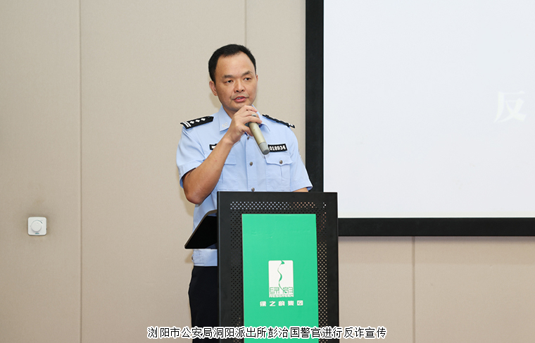 “陌生鏈接不要點,可疑電話別輕信,轉(zhuǎn)賬匯款先核實!”2025年9月17日,瀏陽市公安局洞陽派出所彭治國警官、張猛警官走進綠之韻集團帶來了一堂生動又“干貨”滿滿的反詐宣傳課,為企業(yè)員工的財產(chǎn)安全牢牢“上鎖”。綠之韻集團常務副總裁胡均安、業(yè)務服務中心業(yè)務總經(jīng)理陳建新、黨委副書記許達仲帶領(lǐng)企業(yè)員工代表參加培訓。