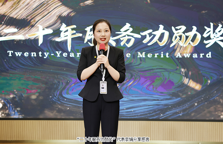 榜樣引領(lǐng)方向,榮耀致敬堅(jiān)守。大會(huì)隆重表彰了2025年度“五年服務(wù)英才獎(jiǎng)”、“十年服務(wù)忠誠獎(jiǎng)”與“二十年服務(wù)功勛獎(jiǎng)”獲得者,向與企業(yè)風(fēng)雨同舟的忠誠員工致以崇高敬意。勞嘉總裁、胡均安常務(wù)副總裁依次為獲獎(jiǎng)優(yōu)秀個(gè)人頒發(fā)榮譽(yù)獎(jiǎng)杯和證書。獲獎(jiǎng)代表蔣文、李娟、牛小紅、羅瓊蕾深情分享與綠之韻共同成長(zhǎng)的心路歷程,她們以歲月為筆,以實(shí)干為墨,生動(dòng)詮釋了“擇一事終一生”的執(zhí)著與熱愛,為企業(yè)文化注入了深厚而溫暖的底蘊(yùn)。