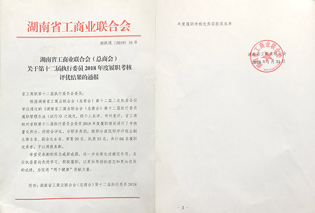 會議審議通過了《關(guān)于設(shè)立湖南省工商聯(lián)顧問委員會決定》,《湖南省工商聯(lián)(總商會)第十二屆執(zhí)行委員會第三次會議選舉辦法(草案),《湖南省工商聯(lián)(總商會)第十二屆執(zhí)行委員會第三次會議秘書長、常務(wù)委員侯選人名單》,《湖南省工商聯(lián)(總商會)第十二屆執(zhí)行委員會第三次會議替補(bǔ)執(zhí)行委員、常務(wù)委員侯選人名單》,通報(bào)表彰了2018年度執(zhí)行委員履職優(yōu)秀副主席、副會長、常委、執(zhí)委。胡國安董事長獲評2018年度履職優(yōu)秀副會長。