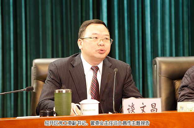 大會(huì)由瀏陽經(jīng)開區(qū)黨工委書記郭力夫主持。會(huì)議伊始,經(jīng)開區(qū)黨工委副書記、管委會(huì)主任談文昌代表區(qū)黨工委、管委會(huì)總結(jié)一年來工作情況。2017年,瀏陽經(jīng)開區(qū)實(shí)現(xiàn)了經(jīng)濟(jì)發(fā)展穩(wěn)中向好,穩(wěn)中趨優(yōu),全面完成了全年的目標(biāo)任務(wù)。園區(qū)被湖南省產(chǎn)業(yè)園區(qū)建設(shè)領(lǐng)導(dǎo)小組辦公室評(píng)定為全省134個(gè)產(chǎn)業(yè)園區(qū)中綜合評(píng)價(jià)第一名;在長沙市重大項(xiàng)目觀摩評(píng)比中排名國家級(jí)園區(qū)第一;生物醫(yī)藥眾創(chuàng)空間被國家科技部批準(zhǔn)為國家級(jí)眾創(chuàng)空間;園區(qū)企業(yè)實(shí)現(xiàn)2家在主板上市,2家在新三板掛牌。2017年已成為園區(qū)近年來推進(jìn)速度最快、發(fā)展勢頭最旺、增長質(zhì)量最好的一年。2018年,瀏陽經(jīng)開區(qū)經(jīng)濟(jì)工作的指導(dǎo)思想是:全面貫徹黨的十九大精神,根據(jù)省、市經(jīng)濟(jì)工作部署,以質(zhì)量效益為中心、以改革創(chuàng)新為動(dòng)力、以項(xiàng)目建設(shè)為抓手,圍繞“產(chǎn)業(yè)項(xiàng)目建設(shè)年”的工作主題,著力“強(qiáng)產(chǎn)業(yè)、補(bǔ)短板、優(yōu)品質(zhì)、聚人氣”,努力實(shí)現(xiàn)“質(zhì)量變革、效率變革、動(dòng)力變革”,開創(chuàng)新時(shí)代園區(qū)改革、創(chuàng)新、發(fā)展的新局面。