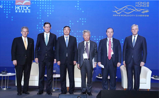 會(huì)議伊始,香港貿(mào)易發(fā)展局主席羅康瑞致歡迎辭。羅康瑞表示,香港地區(qū)目前處于新的經(jīng)濟(jì)發(fā)展節(jié)點(diǎn),外貿(mào)以及經(jīng)濟(jì)的增長(zhǎng)勢(shì)頭仍會(huì)保持,但仍需對(duì)面臨的挑戰(zhàn)和風(fēng)險(xiǎn)保持警惕。特別是在金融收緊和在風(fēng)險(xiǎn)控管方面,部分措施將有待出臺(tái),這有助于進(jìn)一步疏解香港經(jīng)濟(jì)遇到的困難。對(duì)于香港的可持續(xù)發(fā)展問題,他表示投資和創(chuàng)新可以驅(qū)動(dòng)經(jīng)濟(jì)的長(zhǎng)期復(fù)蘇。而作為全球經(jīng)濟(jì)發(fā)展驅(qū)動(dòng)器的“一帶一路”倡議同樣不可忽視。香港作為世界一流的金融中心城市之一,是內(nèi)地和國(guó)際之間重要的連接器,也是“一帶一路”重要的實(shí)施者和參與者。