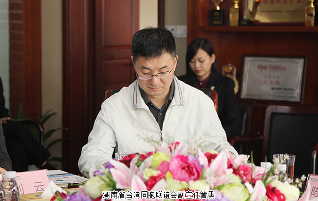 2017年10月31日,全國人大代表、臺盟吉林省第九屆委員會主任委員、吉林省臺聯(lián)會副會長孔令智,臺盟吉林省委副秘書長劉運雙,吉林省政協(xié)委員、吉林省臺聯(lián)秘書長韓梅,臺盟吉林省第九屆委員會委員、長春汽車高等??茖W校教授楊鶴童,臺盟吉林省委調研處處長石凱歌,臺盟吉林省委調研處干部陳一卉一行蒞臨綠之韻集團調研。湖南省臺灣同胞聯(lián)誼會副主任管勇,長沙市政協(xié)委員陳昉青,長沙市臺聯(lián)秘書長、湖南省書法家協(xié)會會員彭眾評等領導參與調研。綠之韻集團董事、總裁勞嘉,綠之韻集團黨委書記劉云全程陪同。