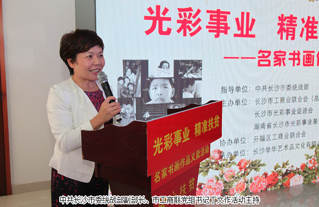 弘揚光彩事業(yè)精神,同心傳播正能量。2017年5月5日,由中共長沙市委統(tǒng)戰(zhàn)部指導,長沙市工商業(yè)聯(lián)合會、長沙市光彩事業(yè)促進會和湖南省長沙市光彩事業(yè)基金會聯(lián)合主辦的“光彩事業(yè) 精準扶貧”名家書畫作品義賣活動在長沙隆重舉行。湖南省第十屆政協(xié)副主席譚仲池,中共長沙市委常委、統(tǒng)戰(zhàn)部部長譚小平,長沙市政協(xié)副主席、市工商聯(lián)主席彭繼球,中共長沙市委統(tǒng)戰(zhàn)部副部長、市工商聯(lián)黨組書記丁文,中共長沙市開福區(qū)區(qū)委書記沈裕謀,湖南省工商聯(lián)(總商會)副會長、長沙市光彩事業(yè)基金會理事長、綠之韻集團董事長胡國安等領導嘉賓出席活動。綠之韻集團總裁、湖南省綠之韻公益基金會理事長勞嘉,秘書長蔣文受邀參加活動,并在現(xiàn)場為愛舉牌。
