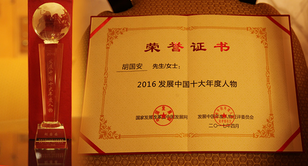 2016“發(fā)展中國(guó)年度人物”征評(píng)以“創(chuàng)新、協(xié)調(diào)、綠色、開放、共享”發(fā)展理念為指導(dǎo),以“挑戰(zhàn)、責(zé)任、創(chuàng)新”為關(guān)鍵詞,以“創(chuàng)新力、影響力、貢獻(xiàn)力、發(fā)展力、經(jīng)營(yíng)力”為征評(píng)標(biāo)準(zhǔn),深度挖掘我國(guó)經(jīng)濟(jì)社會(huì)發(fā)展中標(biāo)志性事件及典型人物,在立足年度經(jīng)濟(jì)社會(huì)發(fā)展的同時(shí),關(guān)注經(jīng)濟(jì)轉(zhuǎn)型中的標(biāo)志性事件和導(dǎo)向性人物,大力宣傳一批具有代表性和影響力的典型人物,弘揚(yáng)他們的先進(jìn)理念,展示他們的奮斗歷程,進(jìn)一步調(diào)動(dòng)企業(yè)家的創(chuàng)業(yè)精神和創(chuàng)業(yè)激情,激勵(lì)他們?yōu)槲覈?guó)經(jīng)濟(jì)社會(huì)發(fā)展做出更大貢獻(xiàn)。綠之韻集團(tuán)在胡國(guó)安董事長(zhǎng)的引領(lǐng)下,堅(jiān)持以尖端生物技術(shù)為依托,致力于發(fā)掘傳統(tǒng)中醫(yī)藥和五千年養(yǎng)生文化精髓。始終秉承“關(guān)愛生命、綠色產(chǎn)品、天然環(huán)保、質(zhì)高品優(yōu)”的產(chǎn)品理念,每年都投入大量的科研資金,引進(jìn)和培養(yǎng)高水平的科研專家、專業(yè)研究人才,并與南京大學(xué)、湖南中醫(yī)藥大學(xué)、湖南農(nóng)業(yè)大學(xué)、南方醫(yī)科大學(xué)等科研機(jī)構(gòu)和院校展開產(chǎn)學(xué)研戰(zhàn)略合作,全力打造“產(chǎn)學(xué)研”成功合作典范,在國(guó)內(nèi)通過(guò)多項(xiàng)國(guó)際權(quán)威認(rèn)證和國(guó)家高新技術(shù)專利。同時(shí),公司積極響應(yīng)“鼓勵(lì)和支持民營(yíng)企業(yè)結(jié)合金融資本上市”的號(hào)召,打造專業(yè)金融管理團(tuán)隊(duì),培育大健康產(chǎn)業(yè)下的大金融產(chǎn)業(yè)布局體系,服務(wù)于國(guó)家“一帶一路”整體發(fā)展戰(zhàn)略。在發(fā)展實(shí)業(yè)的同時(shí),綠之韻集團(tuán)穩(wěn)步推進(jìn)“互聯(lián)網(wǎng)+特色農(nóng)產(chǎn)品、服務(wù)三農(nóng)+產(chǎn)業(yè)扶貧”模式,精準(zhǔn)扶貧,產(chǎn)業(yè)富民。十四年來(lái),綠之韻在胡國(guó)安董事長(zhǎng)帶領(lǐng)下,踴躍參與和傾情捐助了教育、關(guān)愛老人、賑災(zāi)、扶貧、幫困等100多項(xiàng)社會(huì)慈善事業(yè),累計(jì)捐贈(zèng)款物達(dá)6700多萬(wàn)元。除了大力吸納就業(yè)、帶動(dòng)創(chuàng)業(yè),綠之韻還采取扶持式帶動(dòng),鼓勵(lì)和幫助7000多人自主創(chuàng)業(yè);全力以赴推進(jìn)涉農(nóng)項(xiàng)目開發(fā),綠之韻湖南安化萬(wàn)畝中藥材種植基地是湖南省委、省政府“萬(wàn)企聯(lián)村·共同發(fā)展”30個(gè)省級(jí)重點(diǎn)示范項(xiàng)目之一,通過(guò)產(chǎn)業(yè)式、造血式扶貧,40萬(wàn)受益農(nóng)民不需外出務(wù)工,實(shí)現(xiàn)了就地轉(zhuǎn)化就業(yè),促進(jìn)了當(dāng)?shù)亟?jīng)濟(jì)發(fā)展和社會(huì)和諧促,成為了幫助政府解決“三農(nóng)”難題的標(biāo)桿企業(yè)。