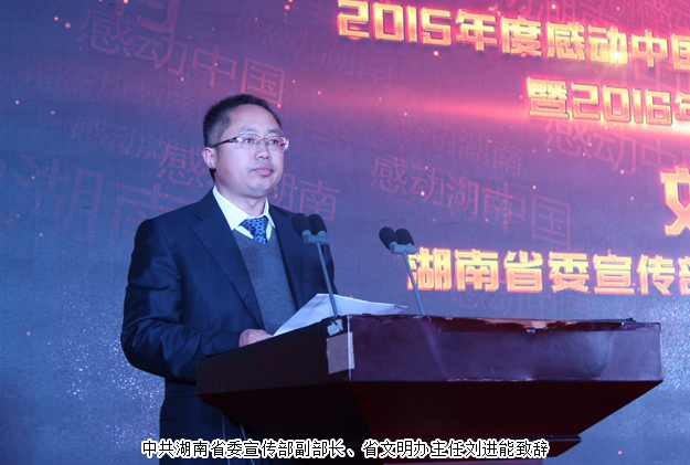 會(huì)上,中共湖南省委宣傳部副部長(zhǎng)、省文明辦主任劉進(jìn)能為活動(dòng)致辭。湖南省人大常委會(huì)副主任李友志發(fā)表重要講話,他在講話中指出:通過“感動(dòng)湖南”活動(dòng)的開展,希望在全社會(huì)營(yíng)造一種助人為樂、積極向上的良好氛圍,激蕩起人們向上、向善的信心和勇氣。無論是今天站在舞臺(tái)上的2015年度“感動(dòng)湖南人物”,還是評(píng)選入圍2016年度的“感動(dòng)湖南”人物代表,他們無不向全社會(huì)展示了敢為人先、無私大愛的湖南風(fēng)骨。我們要向這些善行好人、行業(yè)榜樣致敬!