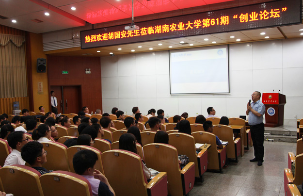據(jù)了解,“創(chuàng)業(yè)論壇”是湖南農(nóng)業(yè)大學(xué)繼人文講壇、科學(xué)論壇后,又一特色文化,旨在關(guān)心大學(xué)生成長,提升大學(xué)生就業(yè)創(chuàng)業(yè)能力,自2009年第一期"創(chuàng)業(yè)論壇"開講以來,已有廣東發(fā)展銀行總行副行長金海騰、江南集團董事長劉軒華、維平網(wǎng)總裁賀衛(wèi)平、湖南水晶坊珠寶商貿(mào)有限公司董事長曾勇、遠大集團副總裁陸虎等50多位商業(yè)成功人士來到湖南農(nóng)業(yè)大學(xué)與同學(xué)們進行面對面地交流,反響強烈。