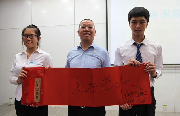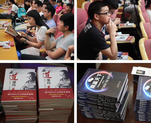 隨后,創(chuàng)業(yè)論壇進入互動提問環(huán)節(jié),大學(xué)生們積極踴躍地提出自己的疑惑和問題,胡國安先生耐心細(xì)致地逐一作答,并鼓勵青年學(xué)子們不僅要科學(xué)規(guī)劃自己,更要在創(chuàng)業(yè)的路程中肩負(fù)責(zé)任,做一個對社會有用的人。在這個環(huán)節(jié)中,胡國安董事長留下了許多令人記憶深刻的話,如“投資自己的大腦”“選擇了就要相信,并且堅持”等一系列的真知灼見,博得了到場所有人的熱烈掌聲。論壇結(jié)束后,胡國安董事長現(xiàn)場向農(nóng)大學(xué)子們簽名贈送了其著作《水到渠成》《微贏天下》以及綠之韻系列產(chǎn)品,同學(xué)們興奮不已,紛紛要求與胡國安董事長合影留念。