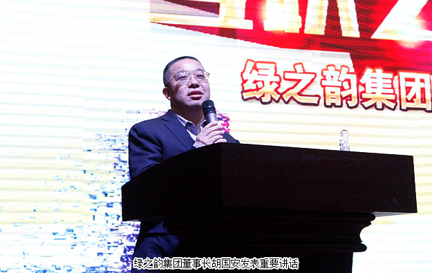 在全場熱烈的掌聲和大家目光的聚焦下,綠之韻集團董事長胡國安先生壓軸登場,并發(fā)表了重要講話,他向全體銳意進取、開拓創(chuàng)新的綠之韻家人致以最誠摯的新年祝福,向所有獲獎?wù)哂枰粤烁叨仍u價并衷心感謝,感謝綠之韻所有員工的辛勤付出,感謝各界朋友對綠之韻事業(yè)的關(guān)心和支持。2015年正是全體綠之韻人秉持著對產(chǎn)品質(zhì)量的不斷追求、對業(yè)務(wù)政策的大力推廣、對客戶服務(wù)的精益求精、對綠之韻品牌的關(guān)心呵護,才能獲取我們今天的新局面和新機遇。新的一年,新形勢、新常態(tài)、新理念令人鼓舞、催人奮進。綠之韻全體上下要扎實工作,狠抓落實,努力完成今年的各項工作任務(wù)。希望各位家人共同努力,推進綠之韻事業(yè)在新的一年再創(chuàng)新佳績、再上新臺階,借助互聯(lián)網(wǎng)+的東風實現(xiàn)綠之韻集團的二次騰飛。