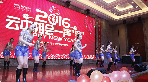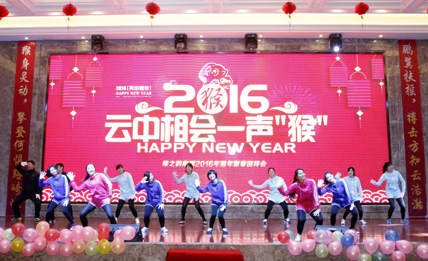 攜手今宵,成功的畫卷已經(jīng)展現(xiàn);放眼未來,綠韻的未來更加美好。新春團拜會是綠之韻每一位員工年終狂歡的嘉年華,綠之韻人親密無間,觥籌交錯,載歌載舞,溫馨華麗的會場歡聲笑語、熱鬧非凡。現(xiàn)場歡聲笑語,暖意融融,處處洋溢著濃郁的喜氣氛圍。在一支動感十足的開場舞中,2016綠之韻新春團拜會正式開始。優(yōu)美的舞蹈、動聽的歌曲串燒、別出心裁的小品、笑料十足的情景劇……各部門精心準備的精彩節(jié)目為集團的同事們獻上了最真摯的新春祝福,帶來了無盡的歡愉享受。