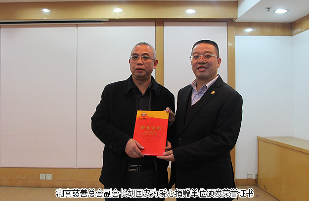 2016年1月6日,“2016年慈善一日捐”在省民政廳機關舉行捐贈儀式活動,這標志著湖南省慈善總會倡導的“2016年送溫暖獻愛心·慈善一日捐”活動正式啟動,現(xiàn)場注入第一筆愛心款84900元。湖南省民政廳廳長、省慈善總會會長段林毅作了動員講話;湖南省政協(xié)原主席、省慈善總會會長王克英同志,湖南省委原副書記謝康生、原湖南省人大常委會副主任羅桂求等省老領導出席了活動,并帶頭進行捐贈。湖南慈善總會副會長、綠之韻集團董事長胡國安先生參與捐贈,同時為愛心捐贈單位頒發(fā)榮譽證書。