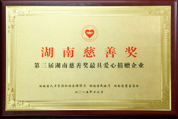 本次大會(huì)還選舉產(chǎn)生了湖南省慈善總會(huì)第三屆理事會(huì)會(huì)長、常務(wù)副會(huì)長、常務(wù)理事、理事,湖南省民政廳黨組書記、廳長段林毅當(dāng)選第三屆理事會(huì)會(huì)長。胡國安董事長當(dāng)選湖南省慈善總會(huì)副會(huì)長。多年來,胡國安董事長積極履行社會(huì)責(zé)任,先后榮獲“全國優(yōu)秀中國特色社會(huì)主義事業(yè)建設(shè)者”、“全國先進(jìn)愛國企業(yè)家”、“全國優(yōu)秀民營企業(yè)家”、“全國關(guān)愛員工優(yōu)秀民營企業(yè)家”、共青團(tuán)中央“希望工程25周年杰出貢獻(xiàn)獎(jiǎng)”、中華慈善總會(huì)“中華慈善突出貢獻(xiàn)獎(jiǎng)”、“湖南省光彩事業(yè)突出貢獻(xiàn)獎(jiǎng)”等多項(xiàng)榮譽(yù)稱號(hào)。
