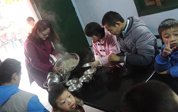 廖老師的事跡被報道出來后,陸續(xù)有愛心人士送來過冬的衣物,入冬后還在只能睡涼席的孩子們有了棉衣和被子。綠之韻公益基金會理事長勞嘉代表綠之韻所有的愛心使者們給廖老師換上了嶄新的棉衣,給孩子們送來了洗發(fā)水、沐浴露、牙膏等日用品,以及大量的食品,并送上愛心善款為孩子們改善冬天的伙食,讓孩子們能過個溫暖的冬天。圍在一起吃餃子的孩子們臉上的笑容宛如溫暖陽光,讓人倍感燦爛和溫馨。