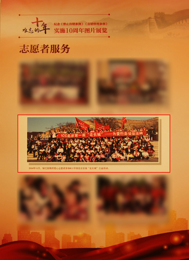 11月4日,國(guó)家工商總局、商務(wù)部在京聯(lián)合召開(kāi)《禁止傳銷(xiāo)條例》《直銷(xiāo)管理?xiàng)l例》頒布實(shí)施十周年座談會(huì)。國(guó)家工商總局副局長(zhǎng)劉玉亭出席會(huì)議并講話(huà),要求全系統(tǒng)認(rèn)真貫徹黨中央、國(guó)務(wù)院決策部署,充分發(fā)揮市場(chǎng)監(jiān)管主力軍作用,依法打擊傳銷(xiāo)規(guī)范直銷(xiāo),為促進(jìn)經(jīng)濟(jì)健康發(fā)展和社會(huì)和諧穩(wěn)定作出新貢獻(xiàn)。商務(wù)部黨組成員、副部長(zhǎng)房愛(ài)卿到會(huì)并講話(huà)。綠之韻集團(tuán)董事、常務(wù)副總裁勞嘉應(yīng)邀出席本次會(huì)議。
