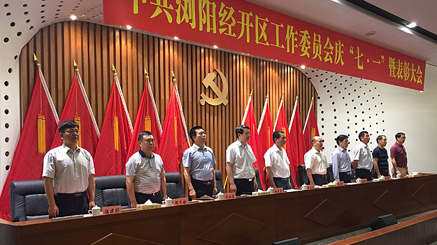 在莊嚴(yán)的國際歌聲中,大會開啟帷幕。首先,園區(qū)黨工委委員、紀(jì)工委書記楊圍山同志作了題為《適應(yīng)全面從嚴(yán)治黨新常態(tài)、推動黨建工作再上新臺階》的黨建工作匯報。他圍繞夯實黨建基礎(chǔ),切實履行黨建工作主體責(zé)任、著眼基層,有效推進(jìn)黨的基層組織建設(shè)、與時俱進(jìn),努力提升黨員干部隊伍素質(zhì)、踐行群眾路線,不斷增進(jìn)人民群眾血肉聯(lián)系、轉(zhuǎn)變作風(fēng),著力打造務(wù)實清廉執(zhí)政環(huán)境等五個方面闡述了如何狠抓創(chuàng)先爭優(yōu)。接著,園區(qū)黨工委委員、管委會副主任劉良成同志宣讀了中共瀏陽經(jīng)濟技術(shù)開發(fā)區(qū)工作委員會關(guān)于表彰2015年度先進(jìn)基層黨組織、優(yōu)秀黨務(wù)工作者和優(yōu)秀共產(chǎn)黨員的通報。