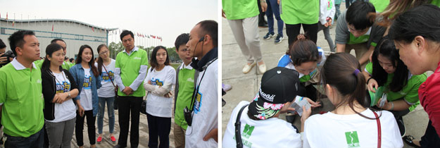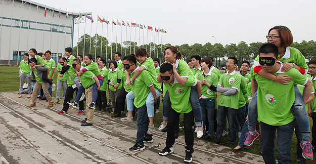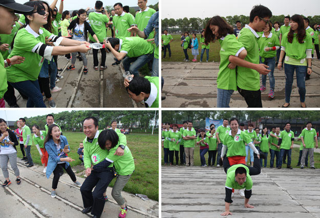 在千龍湖度假村的活動(dòng)草坪上,活動(dòng)組委會(huì)將所有參加活動(dòng)的員工分成了六組,在六個(gè)小組間展開了別開生面、妙趣橫生的趣味競技活動(dòng)。在綠之韻集團(tuán)董事長胡國安先生、董事常務(wù)副總裁勞嘉女士的親切指導(dǎo)下,在現(xiàn)場工作人員的精心組織和安排下,六個(gè)小組各推選出一個(gè)組長,并帶領(lǐng)所有組員充分參與“長龍?jiān)綆X”、小組接力、綁腿賽跑等團(tuán)隊(duì)協(xié)作拓展活動(dòng)。