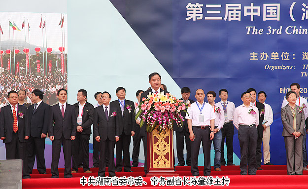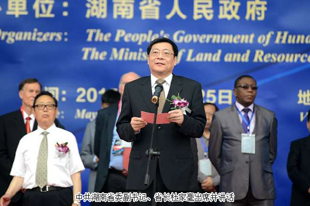開(kāi)幕式上,郴州市委書(shū)記易鵬飛、國(guó)外展商代表羅伯特?拉溫斯基、墨西哥代總領(lǐng)事熊羽分別致辭。美國(guó)圖森展原主席彼得?梅高、澳大利亞昆士蘭博物館聯(lián)盟主任蘇珊?米勒、美國(guó)著名礦物寶石收藏家基因?梅爾安等境外嘉賓,中國(guó)科學(xué)院院士莫宣學(xué),國(guó)土資源部、湖南省委、省人大、省政府、省政協(xié)領(lǐng)導(dǎo),國(guó)家相關(guān)部辦委領(lǐng)導(dǎo),礦博會(huì)組委會(huì)成員單位領(lǐng)導(dǎo),行業(yè)協(xié)會(huì)、礦山企業(yè)、參展商代表,50多家新聞媒體記者及群眾代表等參加了開(kāi)幕式。