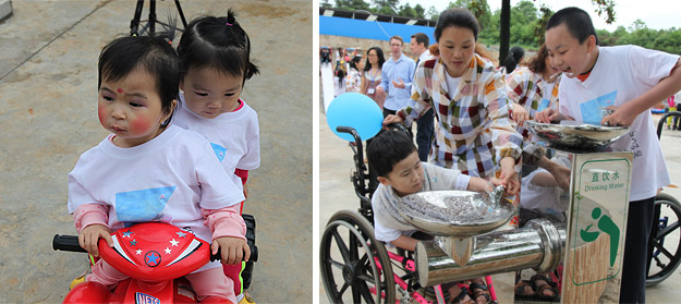 隨后,綠之韻愛心志愿者們與分配的小家庭一起,分組陪伴孩子們從新家院子到游樂場玩耍,同孩子們一起用餐和學習。雖然一些孩子動作遲鈍、在語言交流上有一些困難,但孩子們很快和熱情的綠之韻的愛心志愿者們打成一片,玩得非常開心。胡國安董事長和勞嘉副總裁親自為坐在輪椅上的小朋友系上特制秋千的綁帶,讓他們也感受到在秋千上飛起來感覺,孩子們的笑聲感染了現(xiàn)場每一個人。