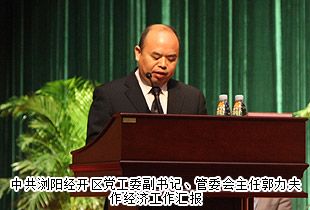 本次會議由中共開發(fā)區(qū)黨工委書記周岳云主持,黨工委副書記、管委會主任郭力夫作了“把握新常態(tài),實(shí)現(xiàn)新跨越,奮力躍上‘千億園區(qū)’新臺階”的講話。他首先回顧2014年經(jīng)濟(jì)工作,瀏陽經(jīng)開區(qū)克服宏觀經(jīng)濟(jì)形勢下行的影響,迎難而上,真抓實(shí)干、開拓創(chuàng)新,各項(xiàng)工作呈現(xiàn)出又好又快的發(fā)展局面,先后榮獲湖南省加速推進(jìn)新型工業(yè)化一等獎、長沙市2014年度國家級園區(qū)績效考核第一名,綜合實(shí)力在全省109個(gè)園區(qū)排名中挺進(jìn)3個(gè)位次躍入前六強(qiáng)。他指出,瀏陽經(jīng)開區(qū)2015年經(jīng)濟(jì)總的指導(dǎo)思想是:以“四個(gè)前面”的治國方略為方針,深入貫徹落實(shí)中共長沙市委、瀏陽市委經(jīng)濟(jì)工作會議精神,把握新常態(tài),力求新作為,突出項(xiàng)目拉動、驅(qū)動創(chuàng)新、改革推動、管理帶動,加快實(shí)現(xiàn)長沙、瀏陽的雙向融城,以項(xiàng)目建設(shè)推動產(chǎn)業(yè)結(jié)構(gòu)調(diào)整、以產(chǎn)業(yè)結(jié)構(gòu)調(diào)整推動園區(qū)快速發(fā)展,努力成為長沙高科技產(chǎn)業(yè)的重要增長極、瀏陽經(jīng)濟(jì)發(fā)展的主陣地,奮力邁上“千億園區(qū)”新臺階。