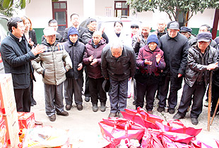 “三月天氣依然寒冷,我們?yōu)槔先藗兯蛠硪恍┥钗镔Y,不僅是為了學(xué)雷鋒,發(fā)揚雷鋒精神,更是希望通過我們微薄的力量,要引起社會群體對老年人的關(guān)注與關(guān)愛。在這里祝所有老人家身體健康,元宵節(jié)快樂!”瀏陽市工商局副局長、個私協(xié)會會長郭啟安如是說。