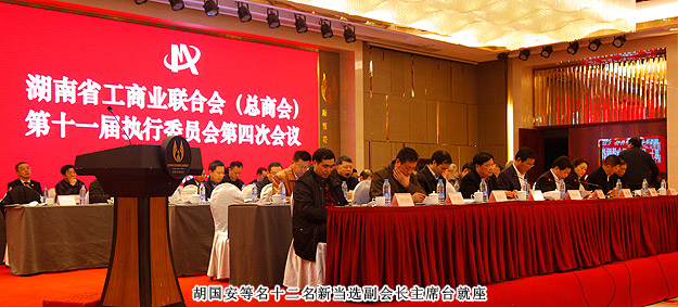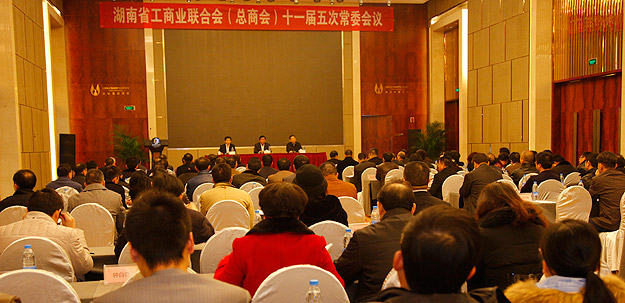 2015年2月3日,湖南省工商聯(lián)(總商會)十一屆五次常委會議、湖南省工商聯(lián)(總商會)十一屆四次執(zhí)委會議在長沙融程花園酒店成功召開。湖南省人民政府副省長、省工商聯(lián)(總商會)主席何報翔, 中共湖南省委統(tǒng)戰(zhàn)部副部長、省工商聯(lián)黨組書記湯新華, 以及省工商聯(lián)全體執(zhí)委、常委、副會長、副主席等出席,湖南省工商聯(lián)(總商會)常委、長沙市工商聯(lián)(總商會) 副主席、綠之韻集團(tuán)董事長胡國安,湖南省工商聯(lián)女商會副會長、綠之韻集團(tuán)董事常務(wù)副總裁勞嘉參加了本次大會。