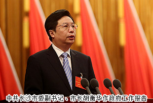 長沙市人大常委會(huì)主任袁觀清主持會(huì)議并宣布大會(huì)開幕。大家全體起立,會(huì)場響起雄壯的國歌。在熱烈的掌聲中,中共長沙市委副書記、市長胡衡華作政府工作報(bào)告。胡衡華說,2014年,在市委的堅(jiān)強(qiáng)領(lǐng)導(dǎo)下,全市上下認(rèn)真落實(shí)省委、省政府“四化兩型”總戰(zhàn)略和“三量齊升”總要求,科學(xué)應(yīng)對復(fù)雜嚴(yán)峻的宏觀經(jīng)濟(jì)形勢,干在實(shí)處,走在前列,經(jīng)濟(jì)社會(huì)持續(xù)健康發(fā)展。預(yù)計(jì)完成地區(qū)生產(chǎn)總值7810億元,增長10%;固定資產(chǎn)投資5430億元,增長18%;財(cái)政總收入1003.08億元,增長13.49%,其中公共財(cái)政預(yù)算收入632.8億元,增長17.92%;規(guī)模以上工業(yè)增加值3050億元,增長12%;社會(huì)消費(fèi)品零售總額3160億元,增長13%;城鄉(xiāng)居民人均可支配收入分別為3.6萬元、2.1萬元,增長9.4%、10.2%;城鎮(zhèn)登記失業(yè)率在2.85%以內(nèi);居民消費(fèi)價(jià)格指數(shù)為102.7;單位地區(qū)生產(chǎn)總值綜合能耗下降4%。長沙全面深化改革實(shí)現(xiàn)良好開局,新興產(chǎn)業(yè)支撐作用凸顯,獲批國家自主創(chuàng)新示范區(qū),邁入地鐵時(shí)代、成為綜合性交通樞紐城市,品質(zhì)長沙建設(shè)向升級(jí)版邁進(jìn),縣(區(qū))域經(jīng)濟(jì)實(shí)力不斷增強(qiáng)。