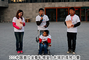 “走長(zhǎng)城”活動(dòng)是國(guó)際關(guān)心中國(guó)慈善協(xié)會(huì)(簡(jiǎn)稱ICC)創(chuàng)始人英國(guó)義工高永恩先生從2007年發(fā)起的,每年的金秋在加拿大、澳大利亞、英國(guó)、美國(guó)、新加坡、法國(guó)、愛(ài)爾蘭、荷蘭、中國(guó)香港、長(zhǎng)沙、衡陽(yáng)、三門峽的愛(ài)心義工們攜手為孤殘兒童行走。ICC在國(guó)外組織的為愛(ài)行走活動(dòng)主要是為中國(guó)的孤殘兒童來(lái)籌集善款,透過(guò)這個(gè)活動(dòng)籌集到的善款挽救了許多孤殘兒童的生命,幫助孩子們有了新的家,有了愛(ài)、希望和機(jī)會(huì)。