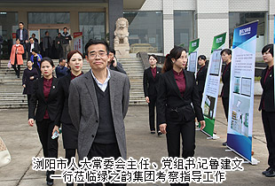 2014年11月21日上午,為更深入了解綠之韻商標品牌培育情況,瀏陽市人大常委會主任、黨組書記魯建文,瀏陽市人大常委常務副主任、黨組副書記孫建科,瀏陽市人大常委副主任張友根、劉一江、劉仙娥、楊智等一行蒞臨綠之韻集團考察調(diào)研。