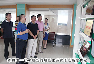 韓杰總隊長一行首先參觀了綠之韻產(chǎn)品形象展廳,了解“以傳承中華五千年中醫(yī)藥養(yǎng)生文化”為使命的綠之韻中醫(yī)藥文化淵源和脈絡?!熬G色、天然、環(huán)保、健康、養(yǎng)生”的產(chǎn)品研發(fā)理念,以產(chǎn)、學、研結合為模式組建的產(chǎn)品科研團隊都受到了韓杰總隊長的充分肯定?!盀榱舜_保產(chǎn)品的品質(zhì),我們希望能夠更為全面的控制產(chǎn)品生物鏈上的所有環(huán)節(jié),包括原料、研發(fā)、生產(chǎn)和銷售,以打造綠之韻‘全產(chǎn)業(yè)鏈條’的產(chǎn)業(yè)結構。我們擁有五大生產(chǎn)基地,其中益陽萬畝中藥材種植基地,為我們的保健食品提供了優(yōu)質(zhì)的產(chǎn)品原料,而‘綠之韻’進一步督促我們注重產(chǎn)品品質(zhì),因此,綠之韻先后與南京大學、湖南中醫(yī)藥大學、湖南農(nóng)業(yè)大學、南方醫(yī)科大學等科研機構、院校展開戰(zhàn)略合作,共同服務于人類健康,全力打造‘產(chǎn)學研’成功合作典范”,綠之韻集團董事長胡國安向考察團一行匯報。