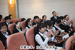 會上,綠之韻集團總裁助理方彥雄、綠之韻國際商學院執(zhí)行院長孫心琥先后講授了《如何成為一名優(yōu)秀員工》和《職業(yè)生涯規(guī)劃與企業(yè)發(fā)展目標》的精彩課程。綠之韻集團董事常務副總裁勞嘉主持了2014年度綠之韻集團崗位期權分紅獎金發(fā)放儀式,集團公司各部門成員意氣風發(fā),分別登臺接受頒獎,現場熱烈的掌聲此起彼伏。