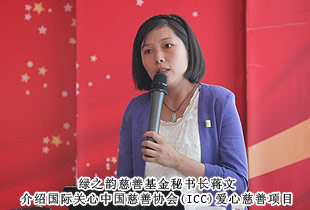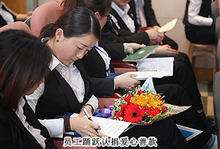 會議臨近尾聲,綠之韻慈善基金秘書長蔣文向大家簡單介紹了國際關心中國慈善協(xié)會(簡稱ICC),以及該協(xié)會在中國開展的一系列愛心慈善項目的情況。下月中旬,綠之韻集團將聯(lián)合國際關心中國慈善協(xié)會(ICC)與走進衡陽,開展幫扶孤殘兒童、殘疾青年的愛心援助項目,她代表綠之韻慈善基金發(fā)出了愛心捐贈的倡議。儀式現場,綠之韻人真情涌動,踴躍認捐,伸出援助之手,獻出綿薄之力,用愛見證改變生命的力量,讓愛見證綠之韻人的力量!