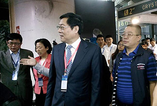 2014年5月15日,亞洲最大、世界前三的礦物化石寶石展——第二屆中國(長沙)國際礦物寶石博覽會(以下簡稱博覽會)在湖南國際會展中心隆重開幕。湖南省工商聯(lián)(總商會)常委、長沙市工商聯(lián)(總商會)副主席、綠之韻集團董事長胡國安受邀出席開幕式,并陪同中共湖南省委副書記、湖南省人民政府省長杜家毫,湖南省人大常委會副主任劉蓮玉等領導一行視察展館。