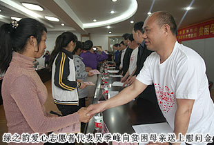 中華慈善總會秘書長邊志偉在發(fā)放善款的時候充滿希望的表示,慈善的力量是偉大的,看到這些傳遞愛心的貧困母親,我們非常欣慰,社會各界愛心人士也會感到欣慰,慈善的母愛更加偉大。儀式上,受捐贈單親貧困母親代表發(fā)言,她向政府、綠之韻集團以及社會各界人士表示衷心的感謝,一定會肩負起“母親”這個神圣的職責,盡己所能,多做利于人的善事,做一個對社會有用的人。