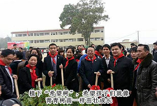 揭牌儀式結(jié)束后,胡國安董事長與綠之韻愛心經(jīng)銷商在李勇翔校長的帶領(lǐng)下一起參觀了月山鎮(zhèn)學(xué)校的教學(xué)環(huán)境,并植下了八棵“希望樹”,希望孩子們就像青青樹苗一樣,充滿生機(jī)與朝氣,努力學(xué)習(xí),成為國家的棟梁,將來更好地建設(shè)家鄉(xiāng)。