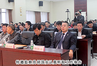 特邀監(jiān)察員胡國安表示:一定珍惜黨和人民賦予的神圣職責(zé)和使命,不斷加強(qiáng)政治和業(yè)務(wù)知識(shí)學(xué)習(xí),不斷提高履職能力和水平,積極主動(dòng)參與行政監(jiān)察工作,及時(shí)反饋廣大納稅人心聲,促進(jìn)地稅機(jī)關(guān)與黨政部門、社會(huì)各界和納稅人的溝通,為構(gòu)建更加融洽、更加和諧的征納關(guān)系而不懈努力!