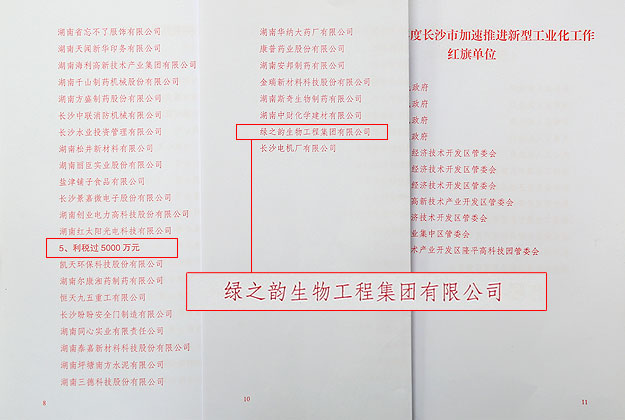 胡國安董事長表示,在長沙國家生物產(chǎn)業(yè)基地千億園區(qū)打造戰(zhàn)略規(guī)劃里,綠之韻集團(tuán)作為四家百億企業(yè)重點(diǎn)扶持單位,連續(xù)多年成為長沙國家生物產(chǎn)業(yè)基地納稅大戶,且連續(xù)多年被長沙市人民政府授予“利稅過5000萬元企業(yè)”稱號(hào),這次又被評(píng)定為“長沙市知識(shí)產(chǎn)權(quán)戰(zhàn)略推進(jìn)工程優(yōu)秀試點(diǎn)企業(yè)”。這些成績的取得,得益于多年來各級(jí)領(lǐng)導(dǎo)的親切關(guān)懷,得益于全體同仁的不懈努力,得益于社會(huì)各界的鼎力支持。2014年,是貫徹落實(shí)黨的十八屆三中全會(huì)精神、全面深化改革的開局之年,是長沙率先建成“三市”、強(qiáng)力實(shí)施“三倍”、加快現(xiàn)代化進(jìn)程的重要一年,同時(shí)也是綠之韻集團(tuán)下一個(gè)十年的開局之年。綠之韻集團(tuán)將按照“六個(gè)走在前列”的要求,搶抓契機(jī),再接再厲,為長沙經(jīng)濟(jì)社會(huì)持續(xù)、健康和快速發(fā)展再創(chuàng)佳績,再立新功!