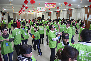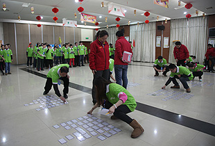 培訓的第一天,為了讓大家快速進入訓練營狀態(tài),零和(中國)體驗式培訓機構(gòu)為大家?guī)Я司实耐卣菇坛獭M卣固赜柦叹殏兪紫冗M行了分組,全體員工被分成十隊——“一馬當先隊”、“先鋒二號隊”、“悍馬隊”、“蛟龍隊”、“超越隊”、“兵利隊”、“野狼隊”、“巔峰隊”、“寶馬隊”和“神馬隊”。每個隊選舉產(chǎn)生一個隊長,自編口號?!吧耨R一出,都是浮云”的口號,彰顯自信,鋒芒畢露;“一馬當先,綠韻最棒”的口號鏗鏘有力,霸氣十足;“兵利兵利,無往不利”的口號,彰顯決心,激情澎湃……通過組建隊伍,明確了組織架構(gòu),為高效、有序地進行團隊項目做好鋪墊,初步形成了良好的團隊氛圍。緊接著,十隊學員精神抖擻,士氣高昂,摩拳擦掌,先后進行了“大海撈針”、“七巧板”、“沖出迷霧”等多項團隊協(xié)作項目,明確了團結(jié)合作、目標分工、角色定位和執(zhí)行力的重要性,極大增強了全員對綠之韻的歸屬感和向心力。同時,本次培訓營還安排了消防、安全知識及演練項目,進一步增強了綠之韻全體員工的安全意識和自防自救能力,有效推進了消防工作全員化。