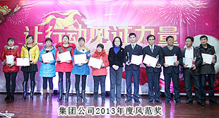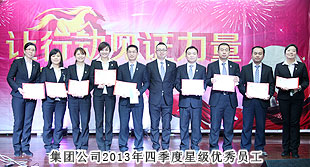 會議最大亮點當屬表彰環(huán)節(jié)。時間記錄了腳步,榮譽證明了努力,2013年表彰大會共設置“季度優(yōu)秀集體”“年度優(yōu)秀員工”“年度優(yōu)秀基層管理干部”“年度優(yōu)秀中層管理干部”“最佳成長獎”“最佳指導老師獎”等多個獎項。榮譽證書和水晶獎杯記載著榮譽,鐫刻著感動。表彰不僅是一份嘉獎,更是一次次回顧,回顧每一次突破與飛躍,為明天的奮斗添加更多的信心和力量!