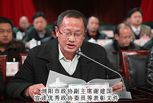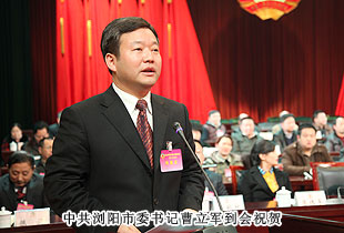 中共瀏陽市委書記曹立軍代表中共瀏陽市委向大會勝利閉幕、向獲得表彰的先進單位、優(yōu)秀委員、優(yōu)秀提案表示熱烈的祝賀。他指出,會議期間,各位委員以飽滿的政治熱情和強烈的責任意識,積極參政議政,踴躍建言獻策,提出了許多寶貴意見和建議。會議開得隆重熱烈、富有成效,是一次承前啟后、團結(jié)民主、求真務實、催人奮進的大會。