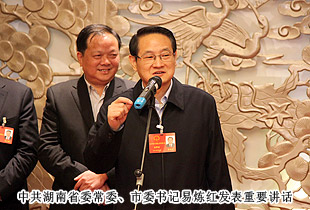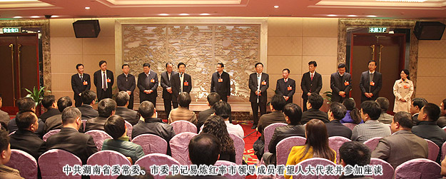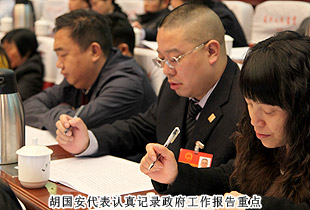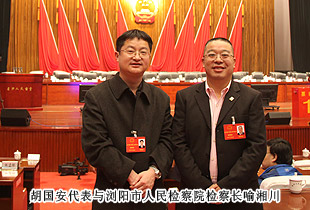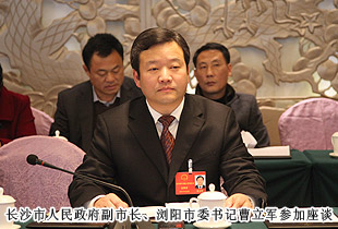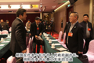 開幕式后,中共湖南省委常委、市委書記易煉紅,中共長沙市委副書記、長沙市人民政府市長胡衡華一行來到各地區(qū)代表團,與出席市十四屆人大二次會議的代表們一起審議政府工作報告,聽取代表們的建議和意見。在瀏陽市代表團分組審議座談會上,就2014年長沙經(jīng)濟社會如何保持平穩(wěn)快速發(fā)展,代表們紛紛獻計獻策。中共長沙市委副書記、長沙市人民政府市長胡衡華,長沙市人大常委會副主任黃佳惠,長沙市人民政府副市長、瀏陽市委書記曹立軍等市領導成員仔細傾聽每位代表發(fā)言,認真記錄,還不時一起探討。胡國安代表在審議時針對胡市長在講話中提到的“全力打造瀏陽河生態(tài)經(jīng)濟示范區(qū),把瀏陽經(jīng)開區(qū)培育成新的千億園區(qū)”和“加快移動電子商務基地建設,促進電子商務加速發(fā)展,爭創(chuàng)國家電子商務示范基地”的兩個觀點,他結合園區(qū)、綠之韻集團實際,詳盡闡述了綠之韻集團的生態(tài)經(jīng)濟發(fā)展思路,以及在瀏陽河與撈刀河畔建立生態(tài)休閑區(qū)、建設五星級生態(tài)酒店和綠之韻連鎖酒店、發(fā)展湖南黑茶產(chǎn)業(yè)、打造藍莓產(chǎn)業(yè)鏈等未來八大發(fā)展規(guī)劃。胡衡華、黃佳惠、曹立軍等省市領導認真聆聽胡國安代表的發(fā)言,邊聽邊記,邊記邊問,對發(fā)言中提及的思路和做法表示高度的肯定。由于胡國安代表長期扎根基層,服務群眾,盡職履責,深入調(diào)研,連續(xù)兩屆擔任人大代表,所提交的議案均緊扣社會熱點和難點,普遍反映比較強烈,長沙市人民政府副市長、瀏陽市委書記曹立軍對此印象十分深刻。分組審議后,曹立軍副市長立軍同胡國安代表進行了面對面的親切交談。他向胡國安代表不久前獲評“長沙市優(yōu)秀人大代表典型風采人物”表示祝賀,希望胡國安代表進一步發(fā)揮出人大代表參與決策、監(jiān)督協(xié)助、橋梁紐帶的作用,為長沙全面推進“六個走在前列”、率先建成“三市”、強力實施“三倍”、加快現(xiàn)代化進程,作出更大的貢獻!