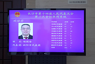 10日下午3時許,長沙市十四屆人大二次會議舉行第三次全體會議。大會執(zhí)行主席、市人大常委會副主任張建國主持會議。本次大會應到代表501人,實到代表490人,符合法定人數(shù)。大會選舉設總監(jiān)票人、監(jiān)票人,總計票人、計票人。大會一致通過了總監(jiān)票人、監(jiān)票人名單,計票人由大會秘書處指定。檢查完票箱,工作人員分發(fā)選票,發(fā)出的選票數(shù)與到會代表人數(shù)相符。代表們填寫完選票后,按次序進行投票。經(jīng)清點,收回的選票數(shù)與發(fā)出的選票數(shù)相同,選舉有效。根據(jù)計票結果,張建國宣布:胡衡華當選為長沙市人民政府市長。胡衡華起立向全體代表致意,會場內(nèi)響起熱烈的掌聲。