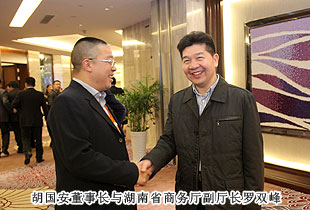 本屆大會開幕式由湖南省商務(wù)廳黨組書記、廳長謝建輝主持、湖南省人民政府副省長盛茂林蒞臨,省直相關(guān)部門負責(zé)人,全省14個市州及其相關(guān)市直部門負責(zé)人,臺港澳及國外重要客商,省內(nèi)外知名企,省內(nèi)外新聞媒體等共計1500人參會,共謀發(fā)展,矚目未來。湖南省政協(xié)委員、湖南省工商聯(lián)(總商會)常委、長沙市工商聯(lián)(總商會)副主席、長沙市海外聯(lián)誼會副會長、綠之韻集團董事長胡國安受邀出席本次大會。